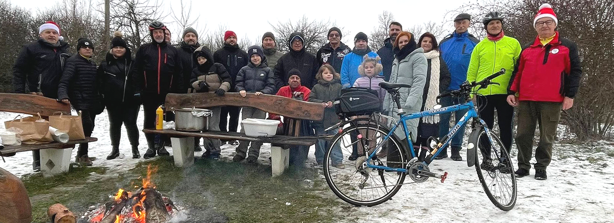 XVIII noworoczny wypad na żurek na skraj Żarek W noworoczne południe 1 I 2026 r. ćwierć setki skołowanych turystów uczestniczyło w dorocznym, osiemnastym już, spotkaniu przy ognisku i radosnej konsumpcji grillowanych kiełbasek oraz wyśmienitego żurku przygotowanych przez Turystyczną Przystań w Leśniowie p. Anity Garncarz. Mimo zerowych wskazań termometru atmosfera była gorąca, nastroje radosne, apetyt wyostrzony, głód wędrowania na nowo rozbudzony. Była to wycieczka nr 1 (2713) w rozpoczętym właśnie kolejnym sezonie turystycznym Osiedlowego Klubu PTTK "M-2" przy Myszkowskiej Spółdzielni Mieszkaniowej w Myszkowie. A dlaczego turyści byli skołowani? Ano dlatego, że wszyscy skorzystali z kołowych środków lokomocji, jedni aut, inni - rowerów. Rozpoczęliśmy 49 sezon rowerowania... |
