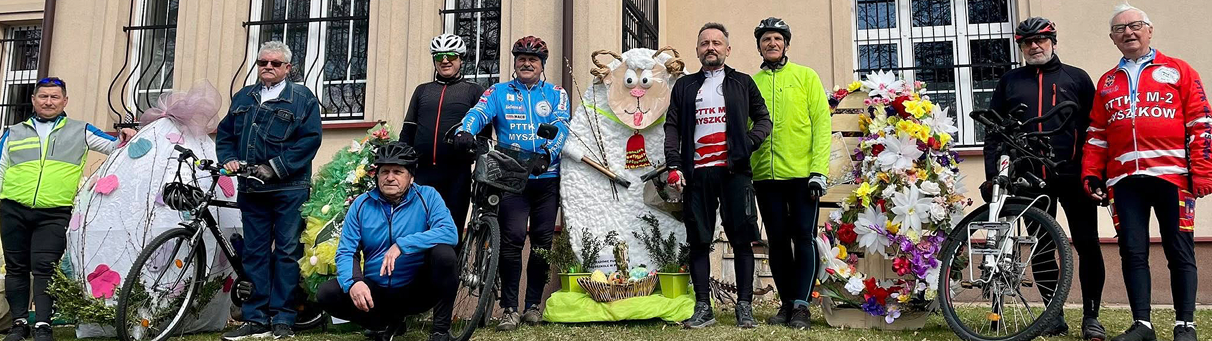 XIV wielkanocno-śmigusowy przejazd primaaprilisowy drogą do Postępu W poniedziałek Wielkanocny, 1 kwietnia, w słonecznych warunkach pogodowych, odbył się kolejny tegoroczny rajd klubowy. Na trasę wyruszyło 11 rowerzystów, nie tylko z Myszkowa, ale też Złotego Potoku i Mikołowa. Jechały z nami 2 małżeństwa, 2 bracia, 2 osoby imieniem Łukasz. Na półmetku, w Postępie, wykonaliśmy pamiątkowe zdjęcie do kroniki, na starcie mieliśmy okolicznościową pieczątkę rajdową. Na trasie obejrzeliśmy Pałac Fabrykanta, siedzibę wójta (w tym roku Myszków świętuje 100-lecie utworzenia gminy Myszków), ogródek jordanowski w Postępie oraz nowy wiadukt na dawnym przejeździe koziegłowskim. |