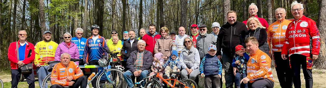 Zlot 45-lecia Klubu PTTK M-2 W słoneczną niedzielę 23 kwietnia 2023 r. na skraju Włodowic z udziałem 67 turystów (głównie rowerowych) z Poręby, Przedborza, Katowic, Kotowic, Knurowa, Poraja, Myszkowa, Woźnik, Zawiercia i Złotego Potoku odbył się zlot urodzinowy Klubu PTTK "M-2" przy Myszkowskiej Sp-ni Mieszkaniowej. Gospodarze częstowali kiełbaskami do ogniska, rozdawali pamiątkowe długopisy, stemplowali książeczki wycieczek jubileuszową pieczątką i namawiali do uczestniczenia w konkursach. Rzuty lotkami wygrał Bogusław Iwaniuk (TKK im. Huzy Gliwice), rzuty beretami Łukasz Grzelczak (Klub PTTK Tajfun Poraj), skok z walizką Jarosław Zieliński (PTTK Przedbórz); nagrody ufundował Burmistrz Myszkowa. Klub "M-2" wysłuchał pieśni urodzinowej "łubu-dubu" w wykonaniu kilkudziesięcioosobowego chóru, nadto w upominku od rowerzystów z KTR PTTK Przedbórz otrzymał ścienną laurkę z powinszowaniami. Życzenia urodzinowe na mecie Zlotu przyjmował Andrzej Zysiak. |