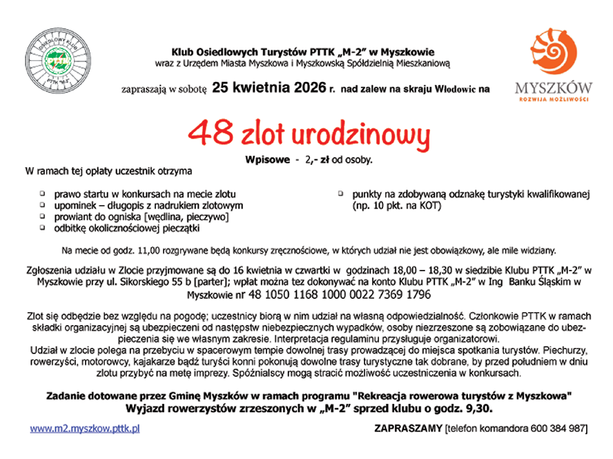 informacji szukaj też: facebook ---> PTTK M-2 Myszków