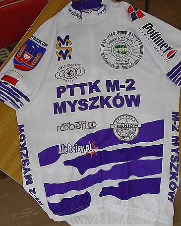 Nowe stroje Tegoroczne lato powitamy w nowych strojach kolarskich; koszulki z krótkimi rękawkami zdominuje kolor ceglasty, natomiast z długimi rękawami - kolor niebieski. Nowe stroje wykonano z wpłat członków klubu przy wsparciu finansowym Burmistrza Myszkowa. Na wesele Pawła wybierzemy się w nowych koszulkach - mówią p. Jola i p.t.kol. Andrzej przygotowujący długodystansową ekipę wycieczkową do Sokolnik. |